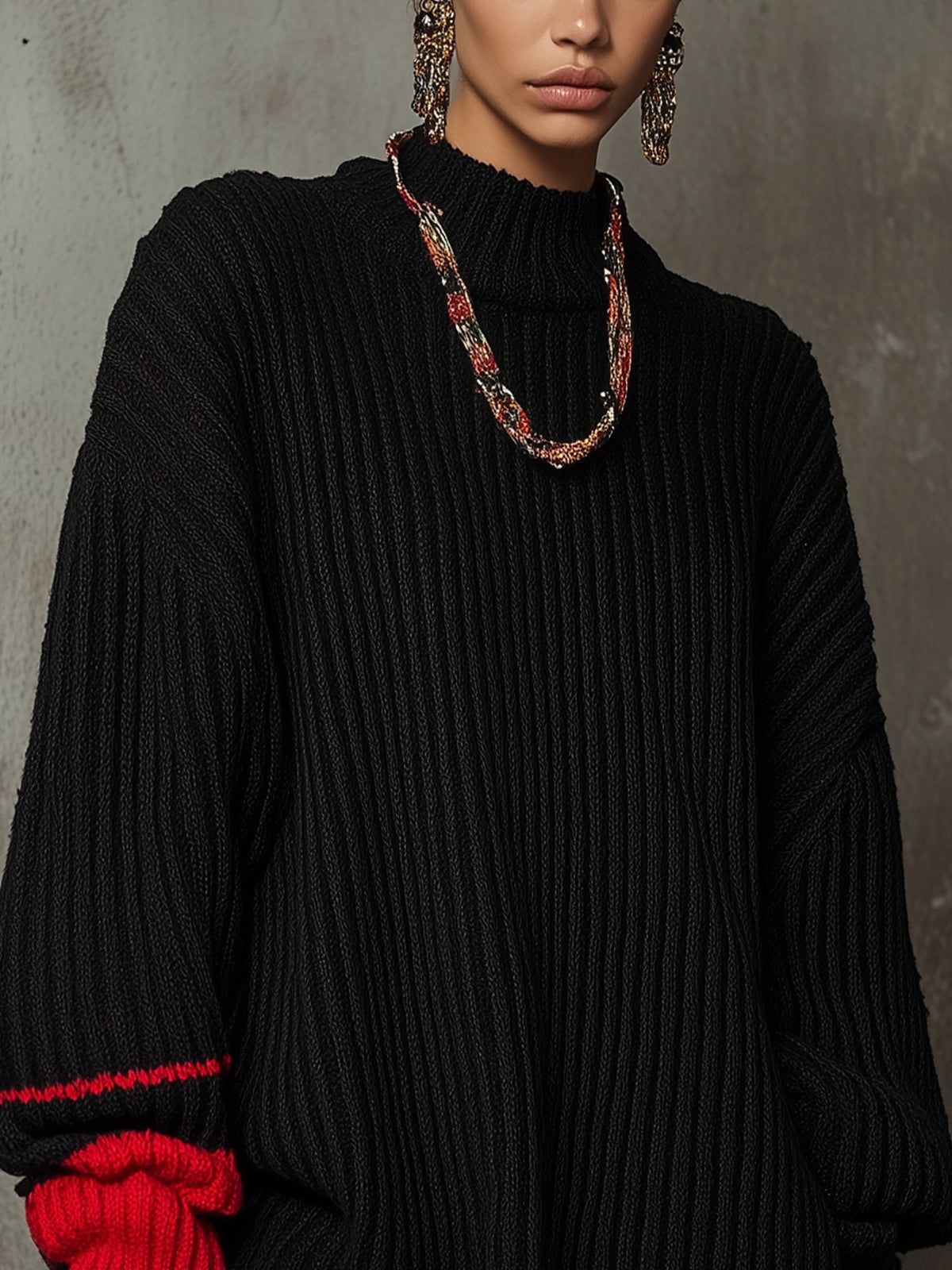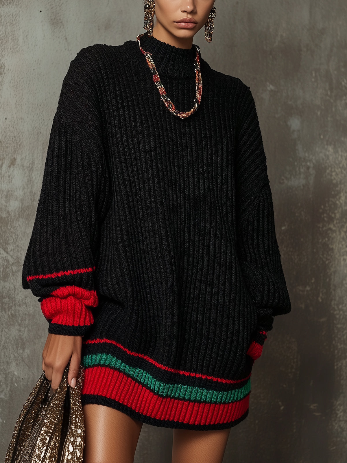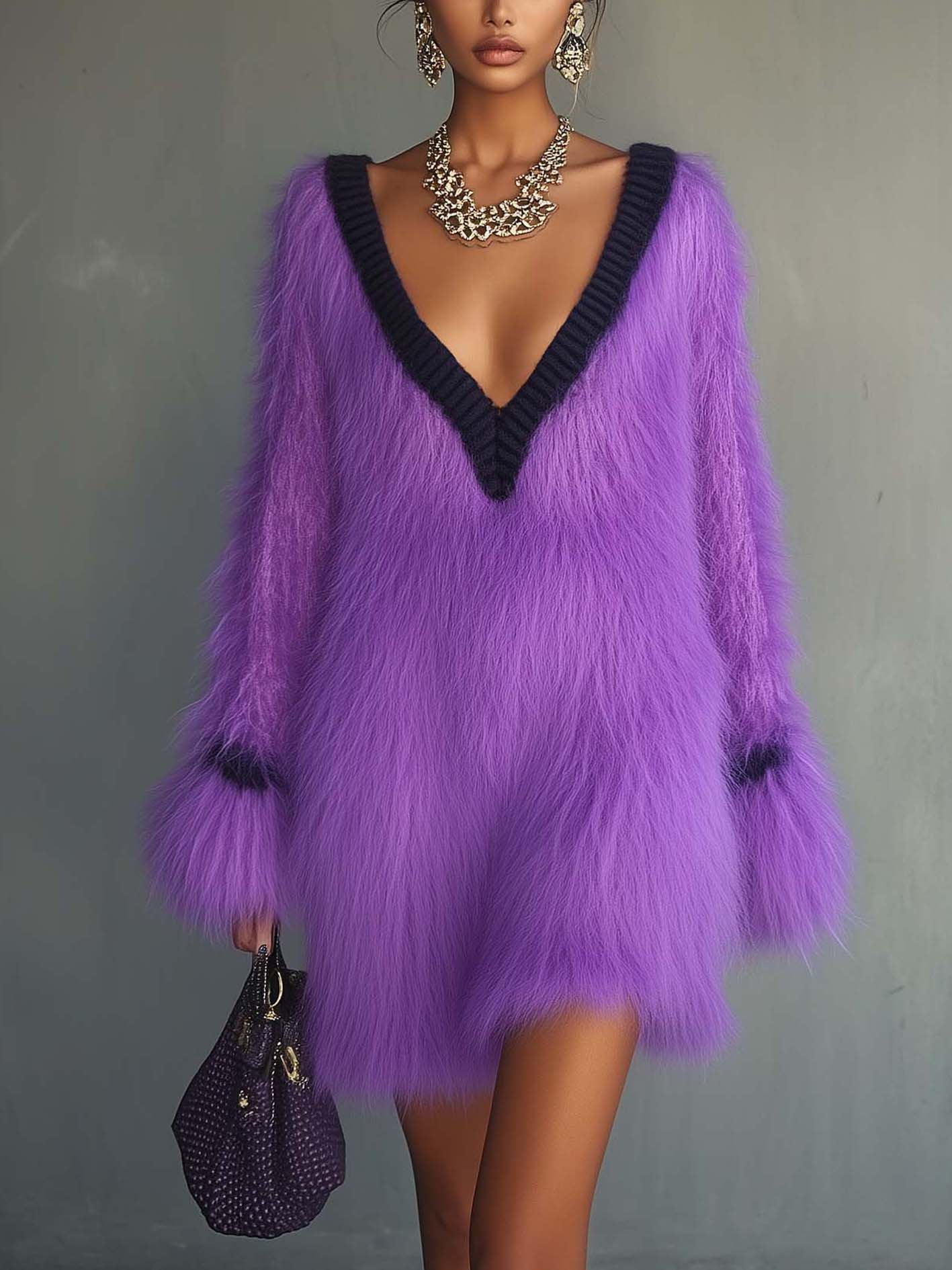 Fuzzy Purple Knit Mini Dress With Black Trim
