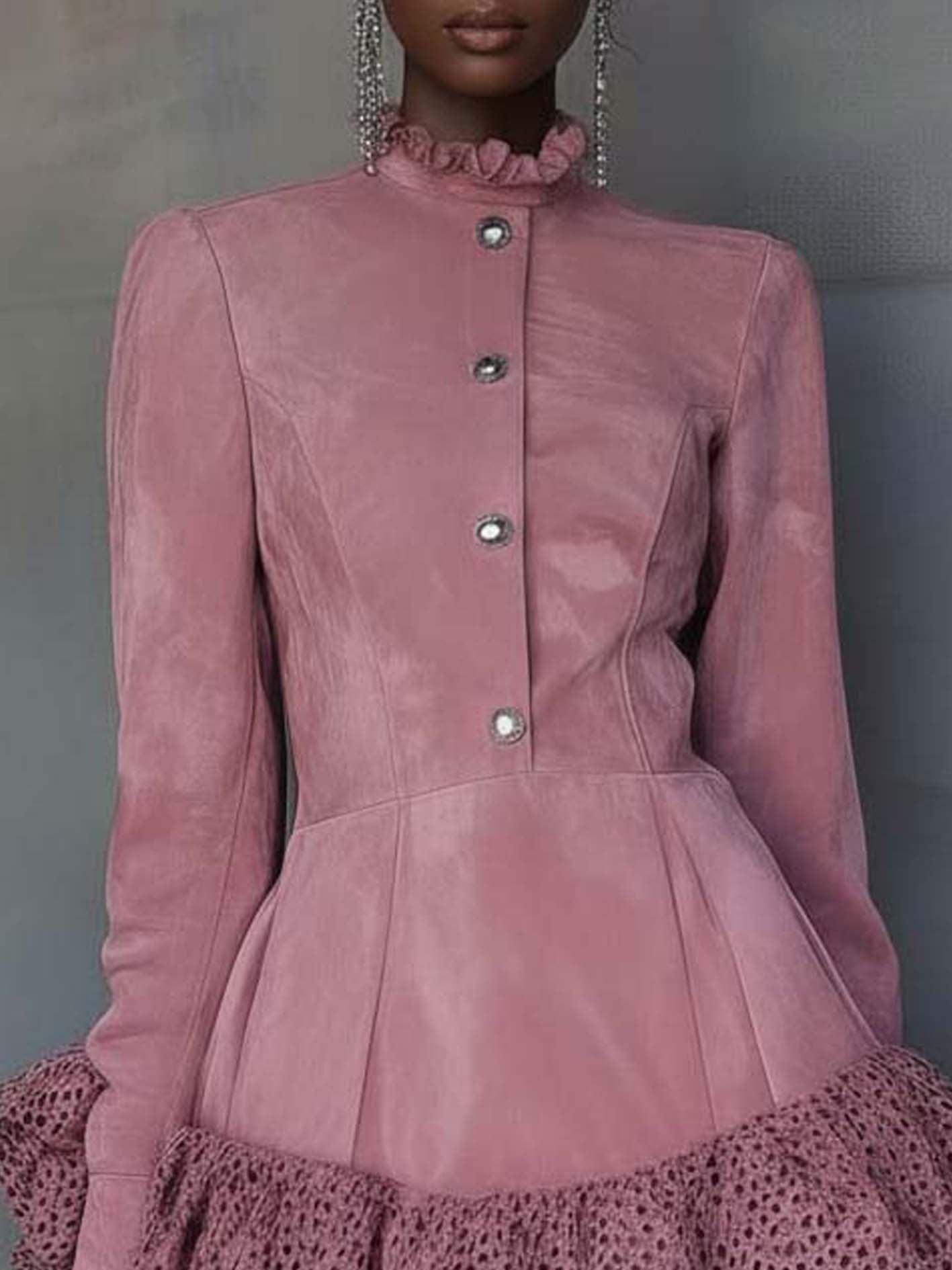 Pink Faux Suede Mini Dress With Leopard Print Ruffles