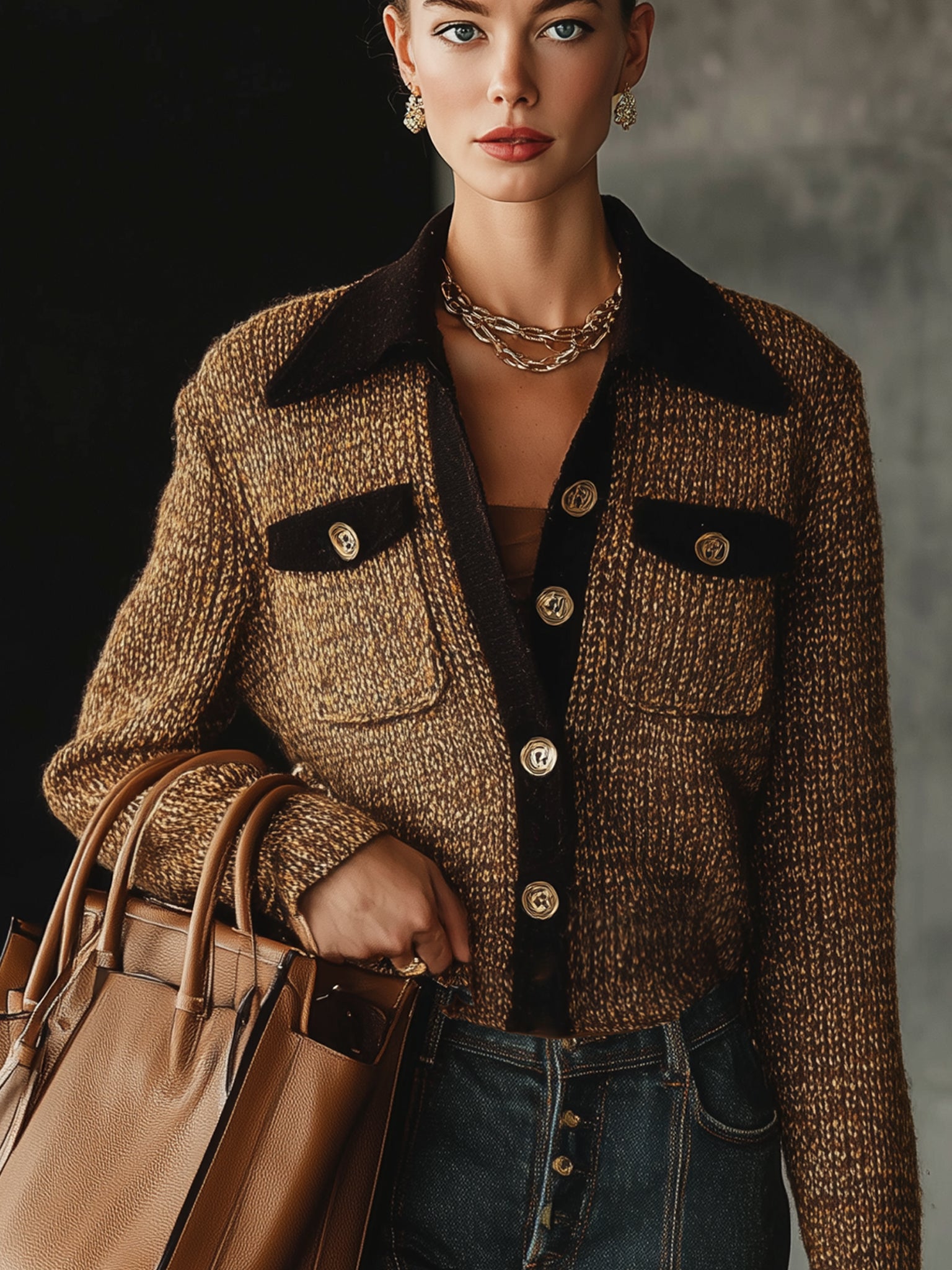Gray Classic Double-Breasted Coat With Gold Button Accents