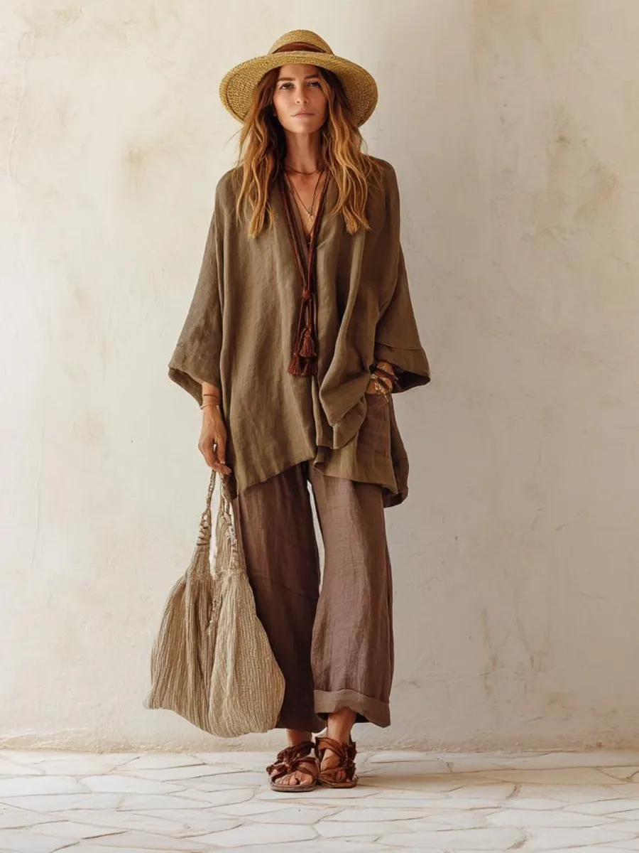Cotton and linen women's loose suit
