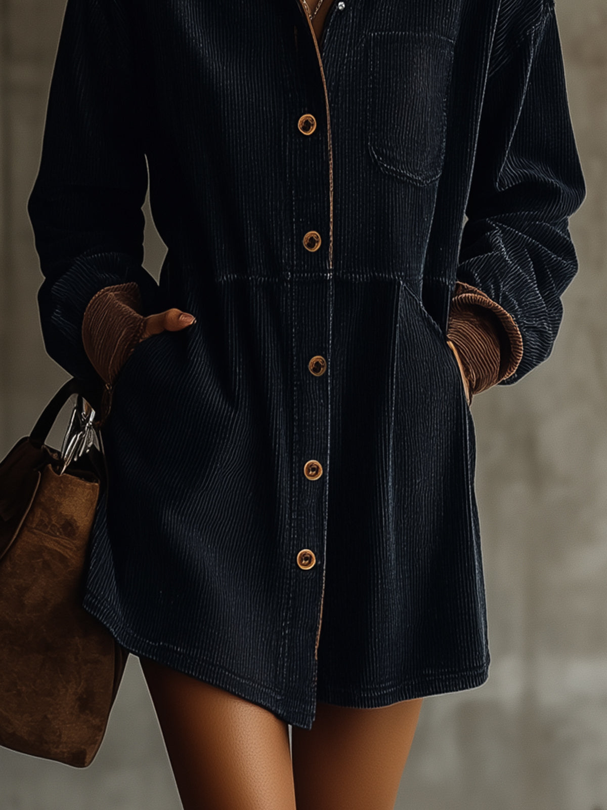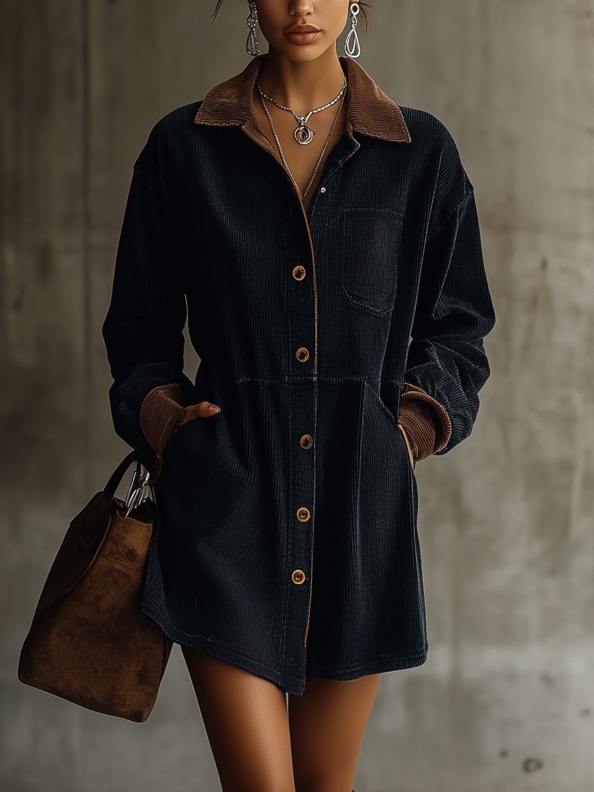 - Material: Made from soft corduroy, featuring a contrast collar and cuffs for added style.