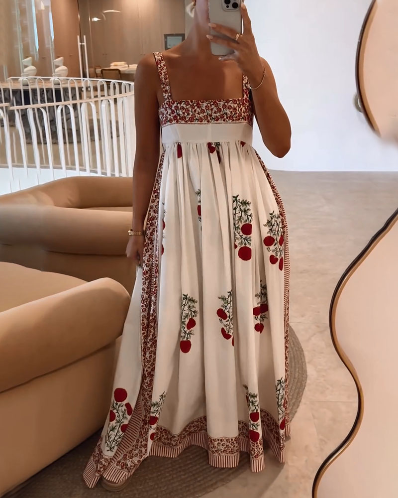 Suspender floral print casual dress
