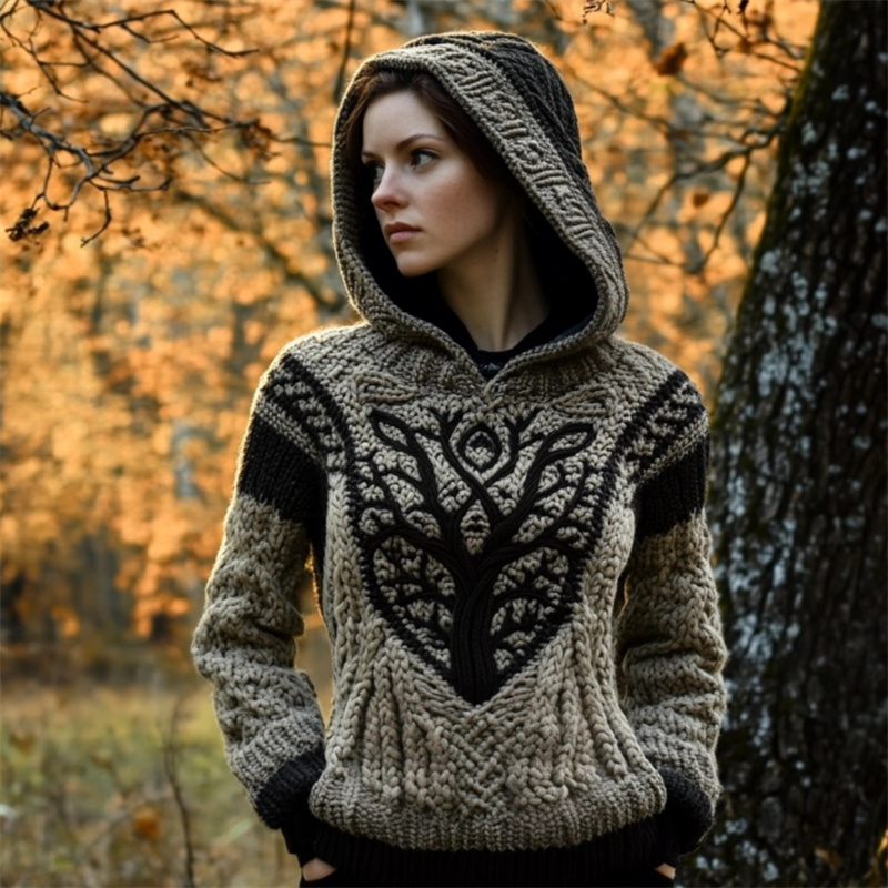 Viking Tree Of Life Tribal Celtic Cozy Chunky Hooded Sweater