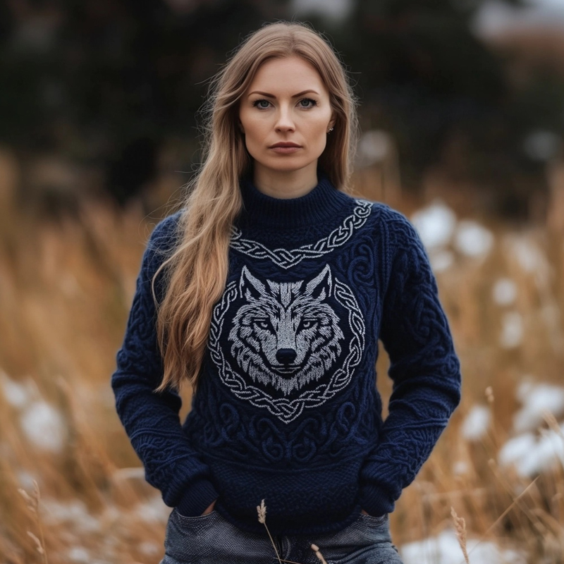 Viking Wolf Inspired Celtic Jacquard Cozy Chunky Sweater